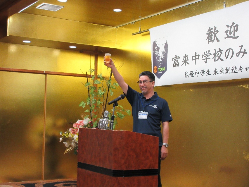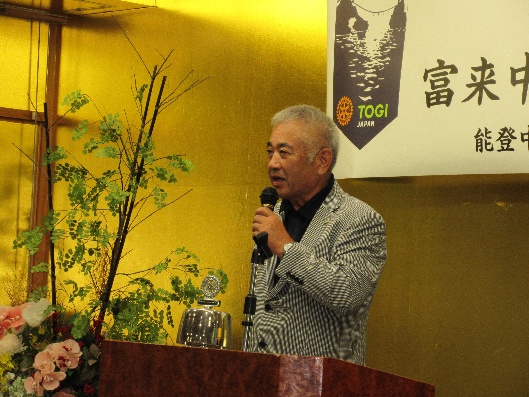 富来RC中島会長からご挨拶をいただき、続いて生徒代表からも挨拶がありました。富来RC寺岡直前会長の発声で乾杯を行い、和やかな雰囲気の中で例会が進行しました。